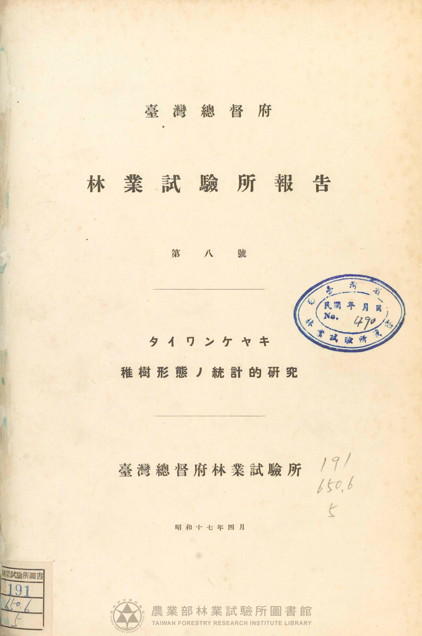 臺灣總督府林業試驗所報告 第八號
