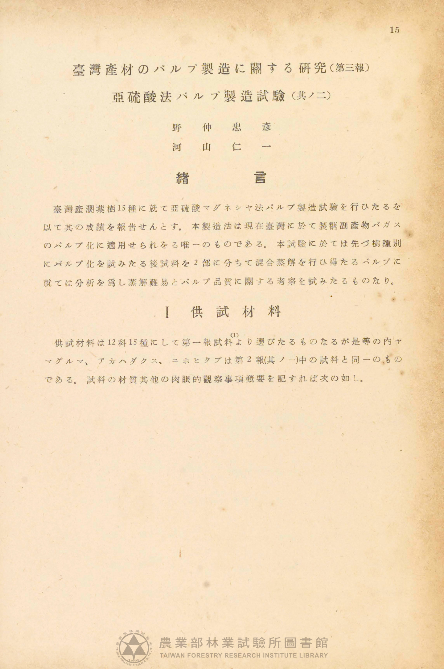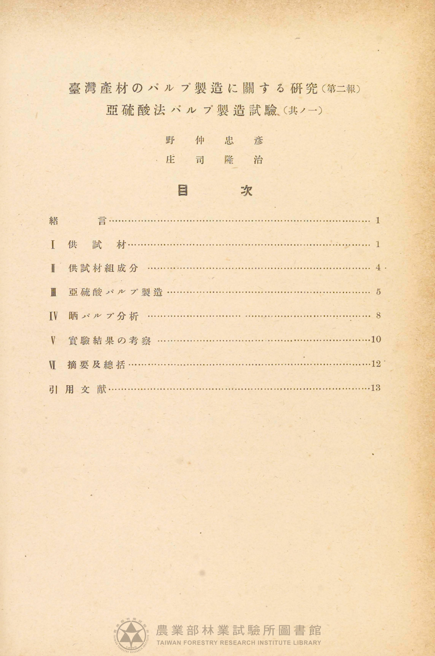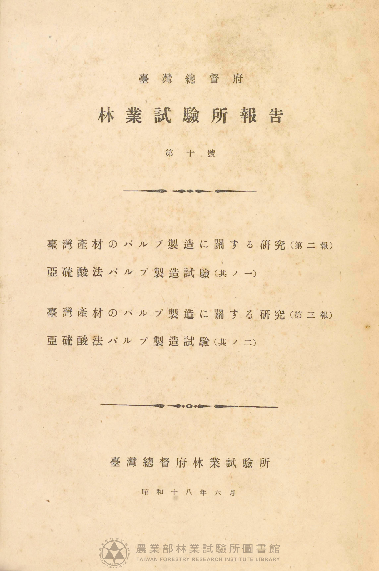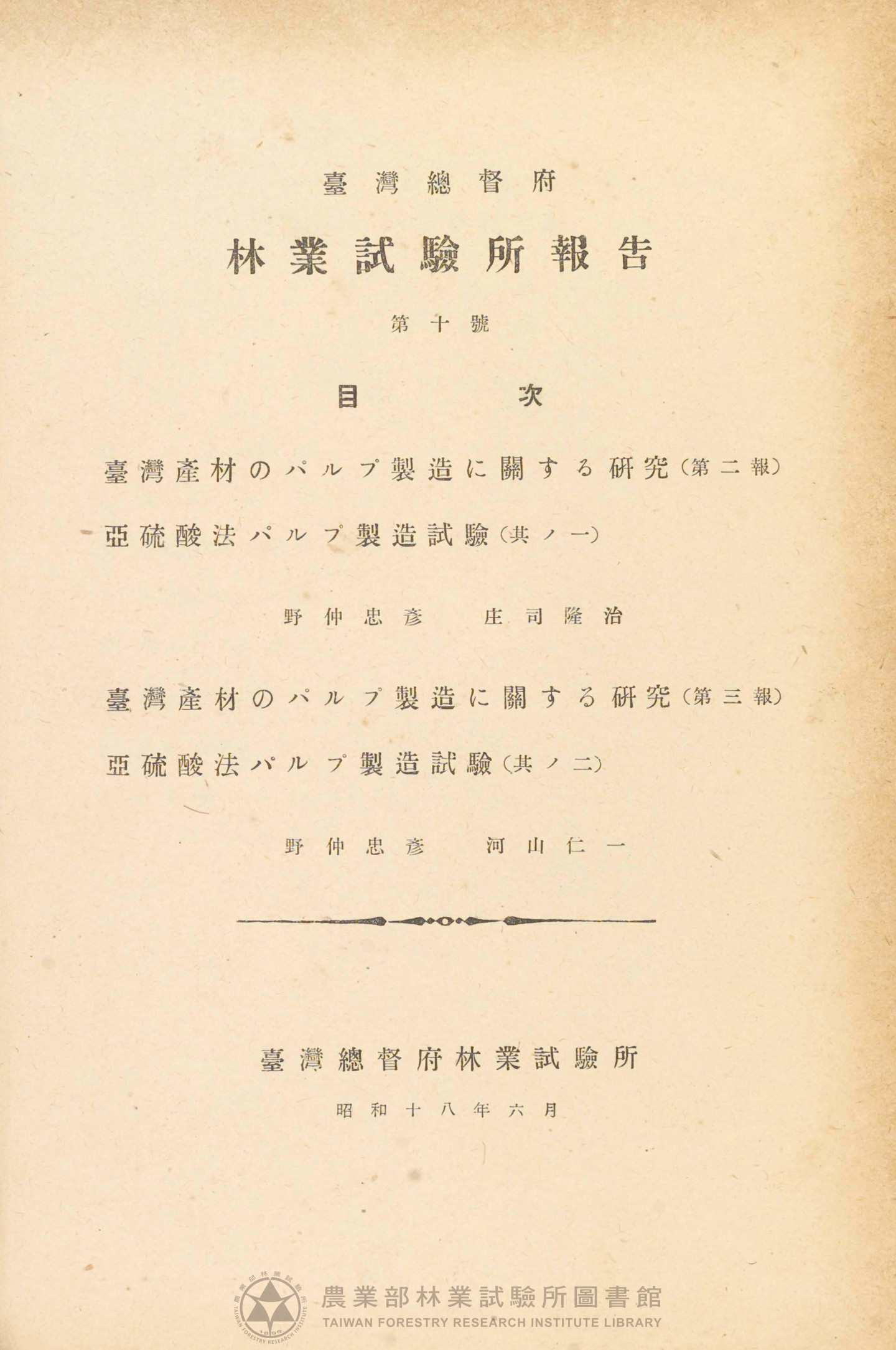 臺灣總督府林業試驗所報告 第十號