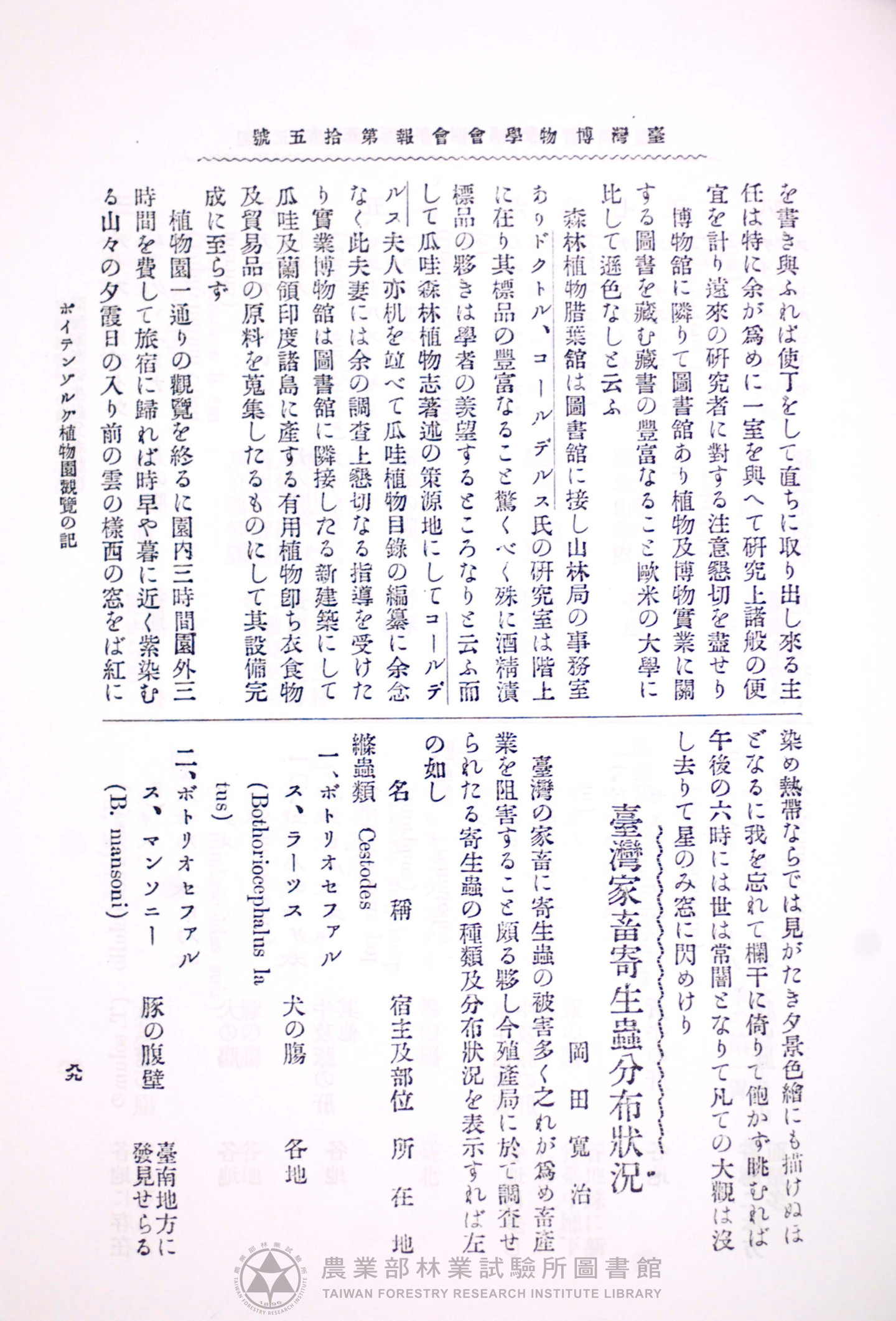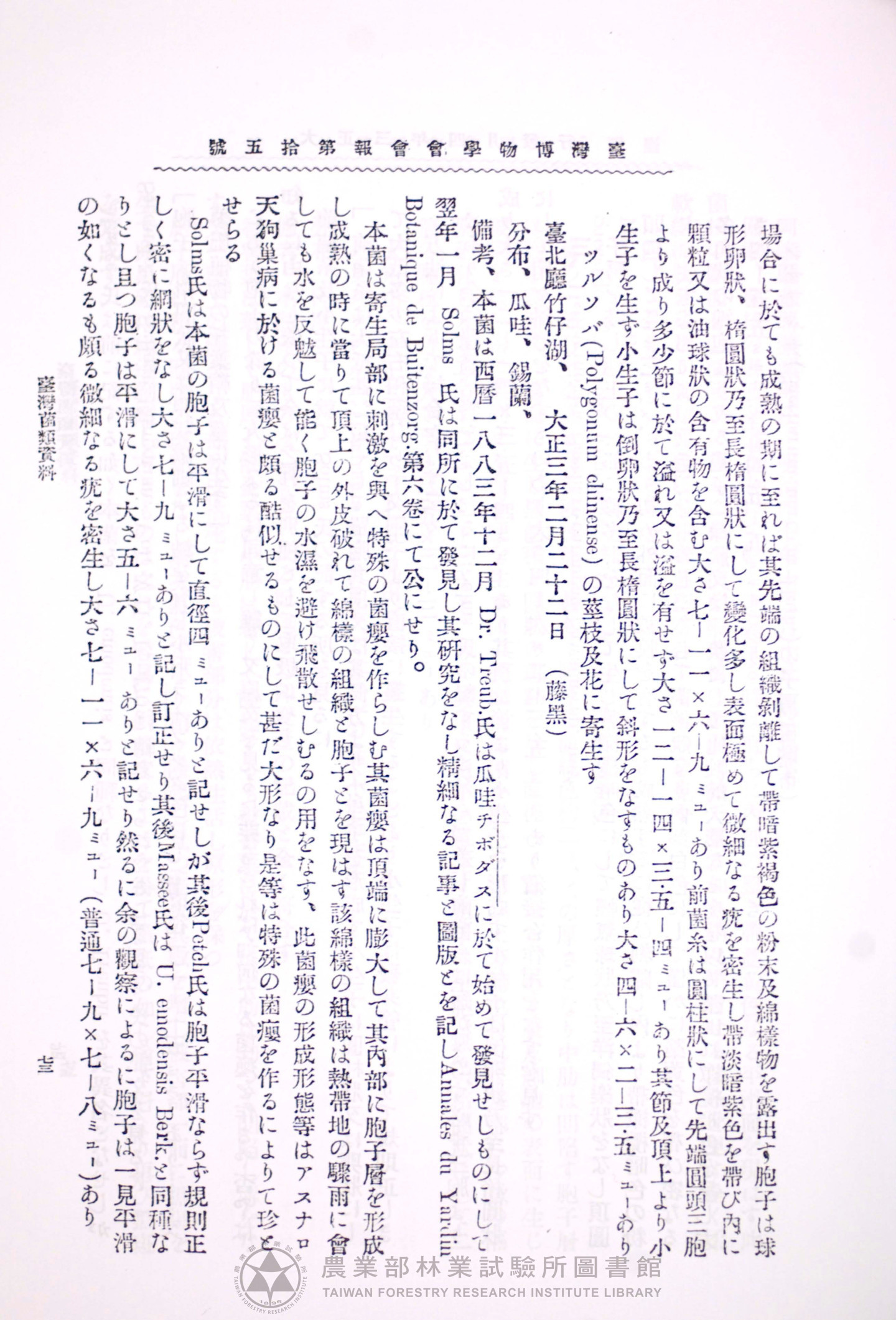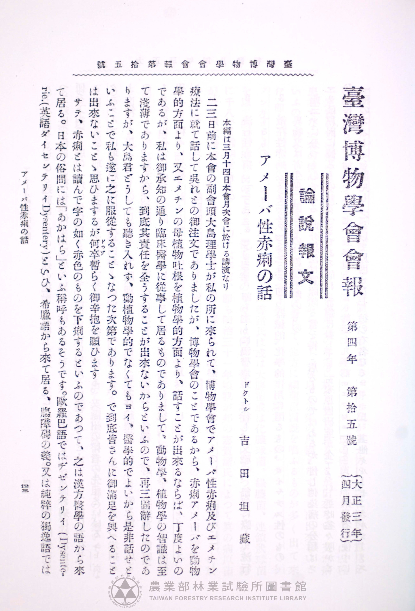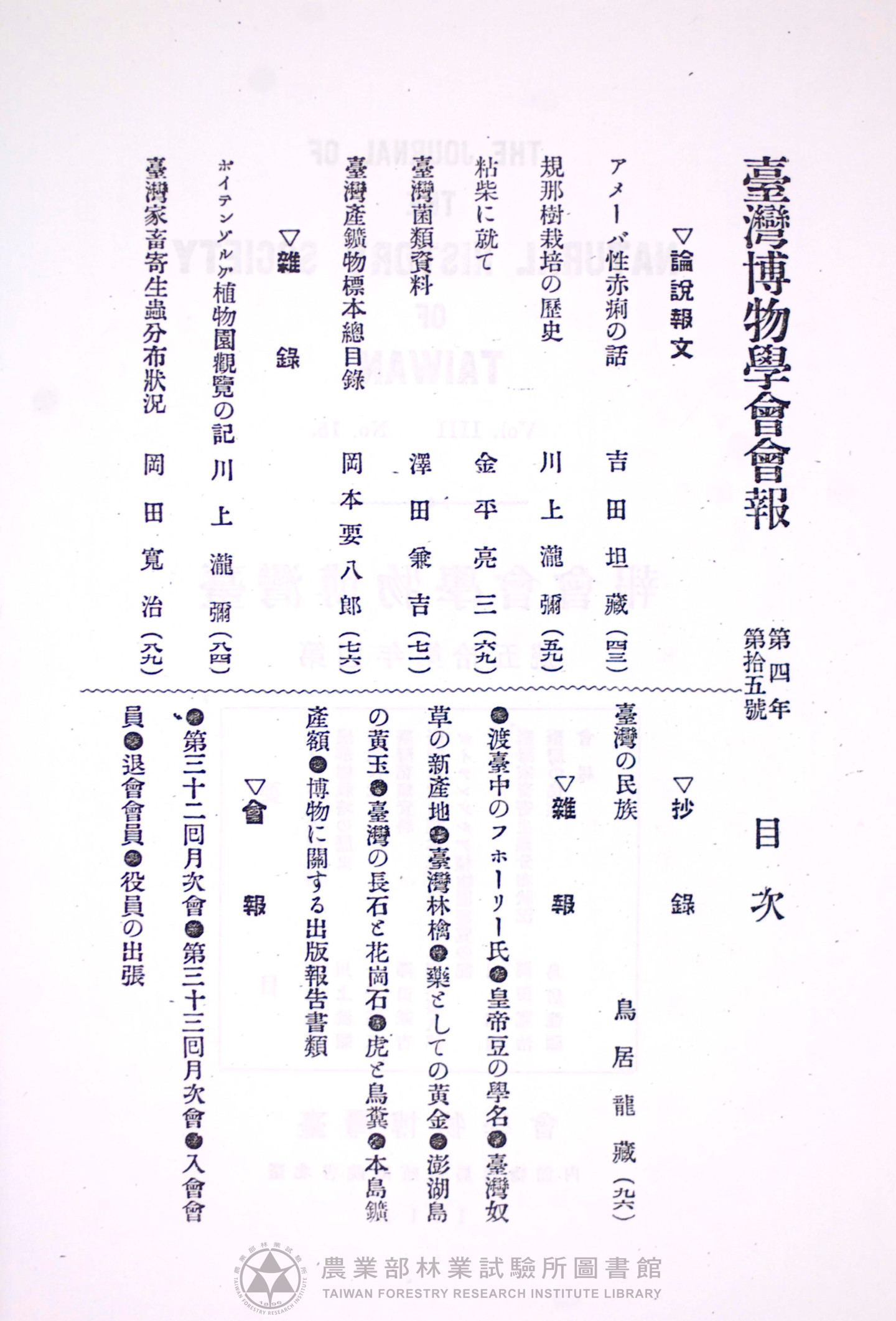 臺灣博物學會會報 第四卷 第十五號
