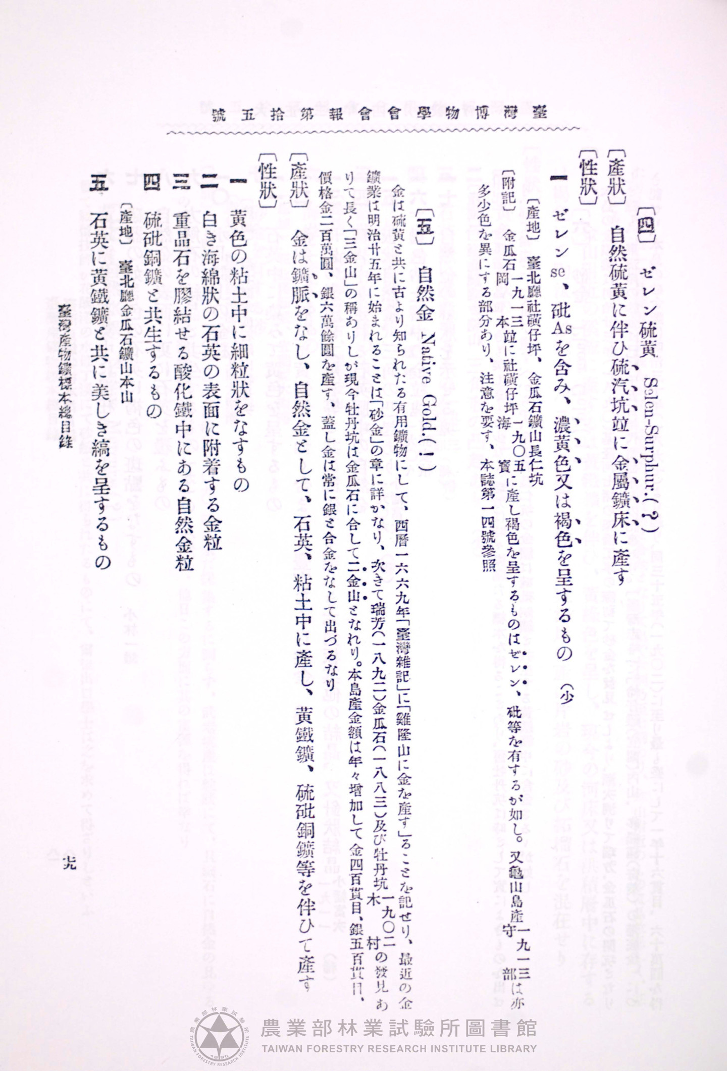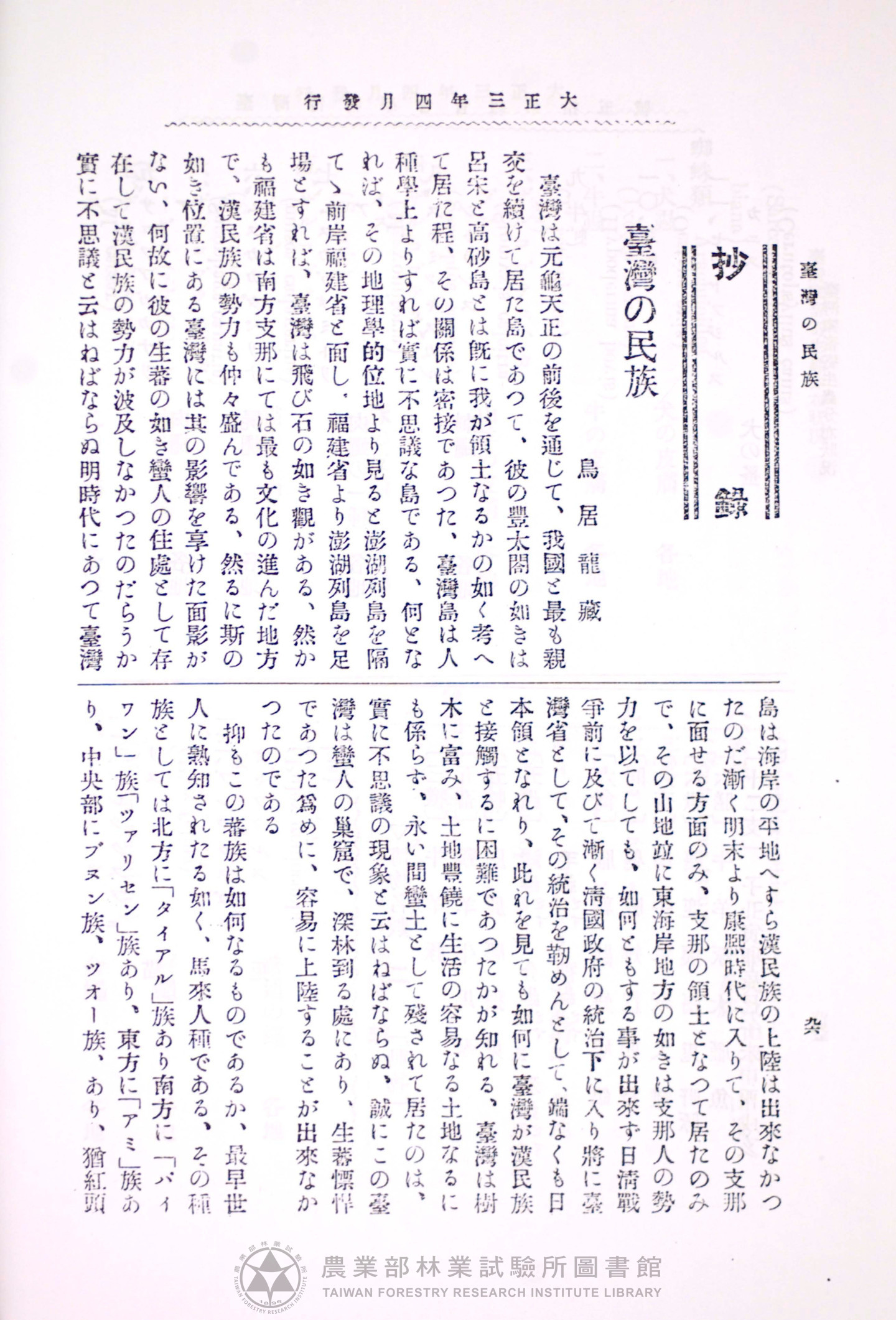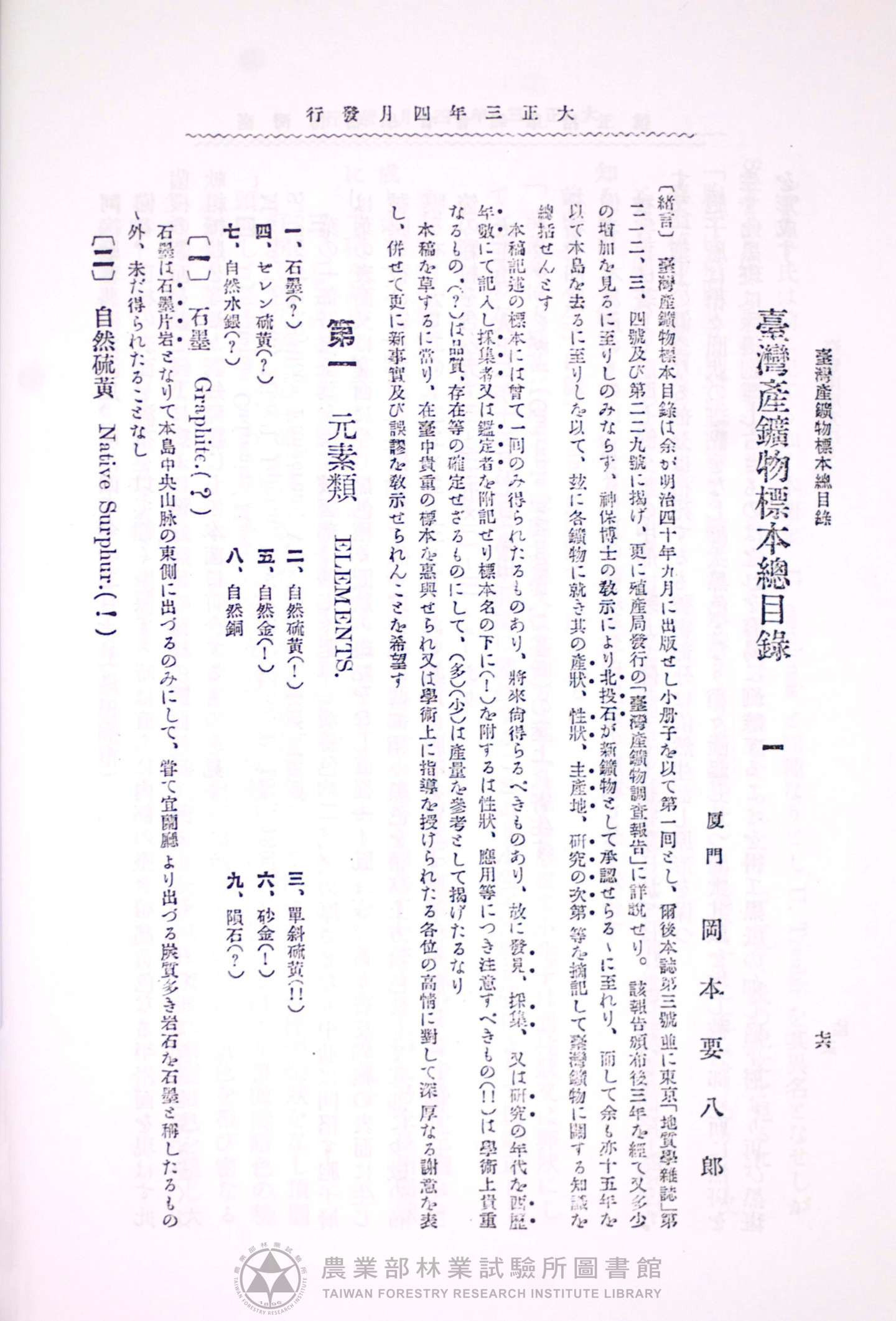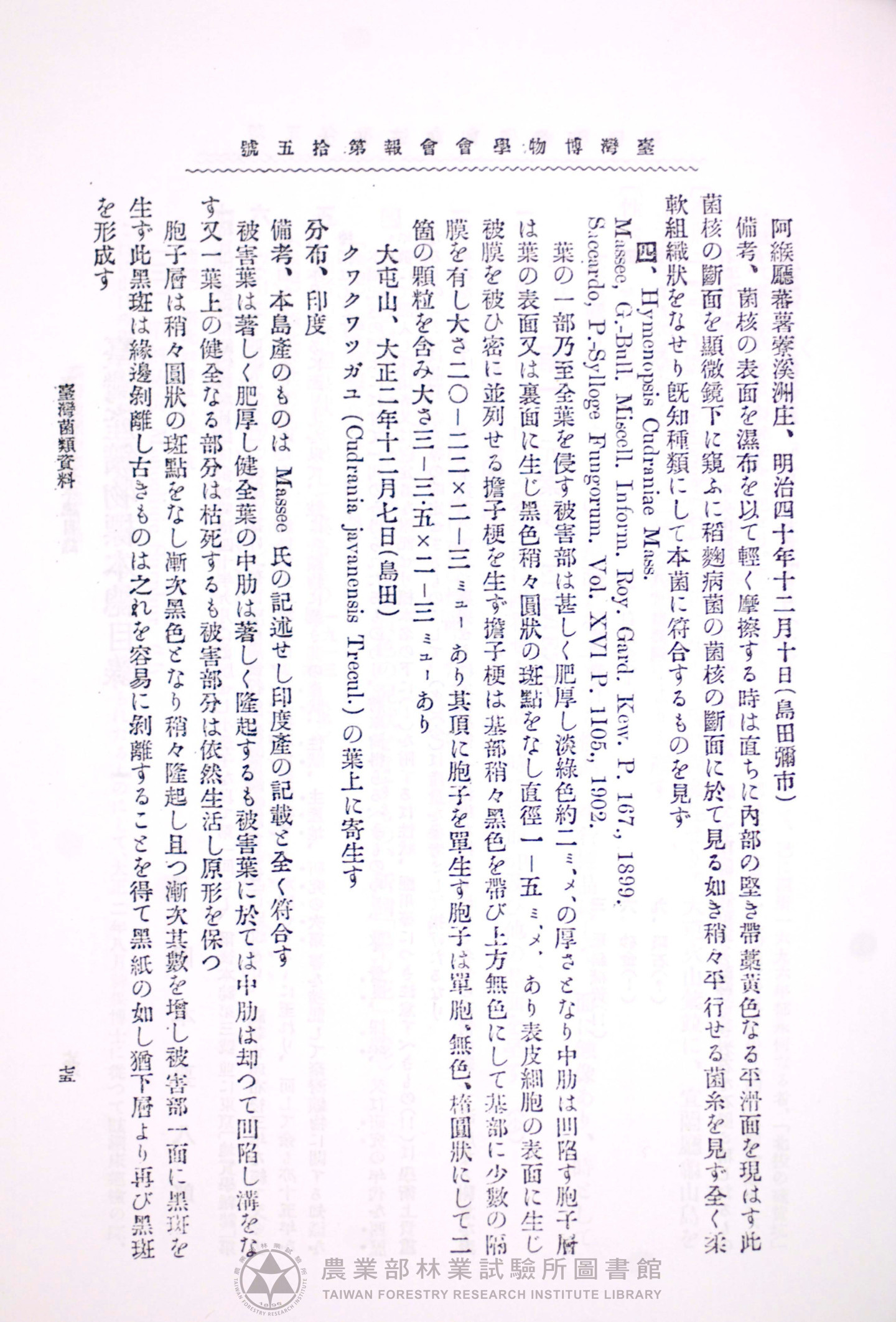 臺灣博物學會會報 第四卷 第十五號
