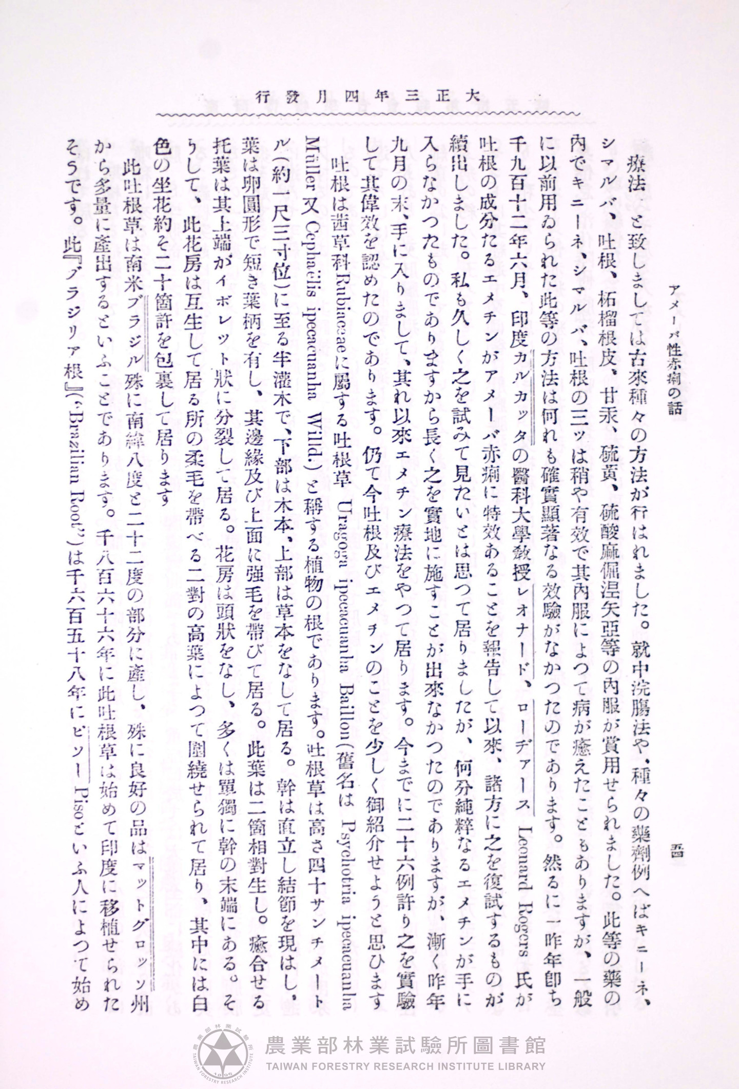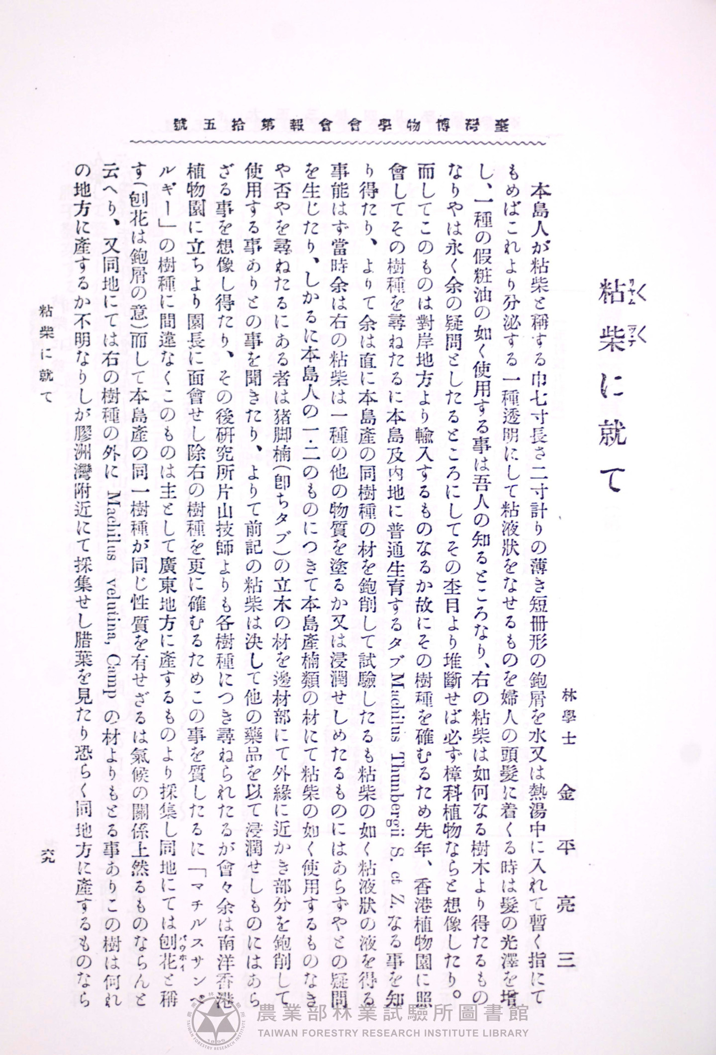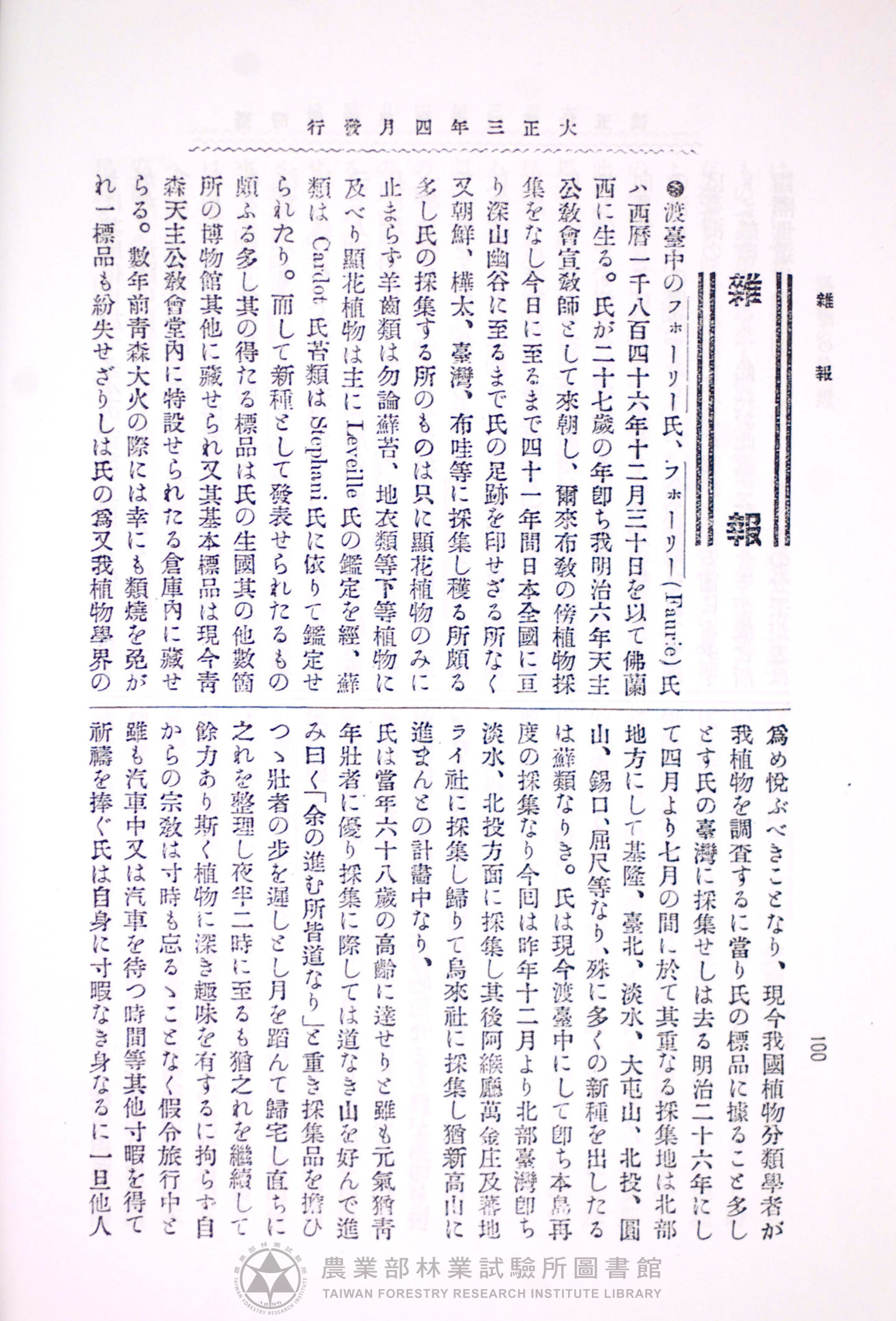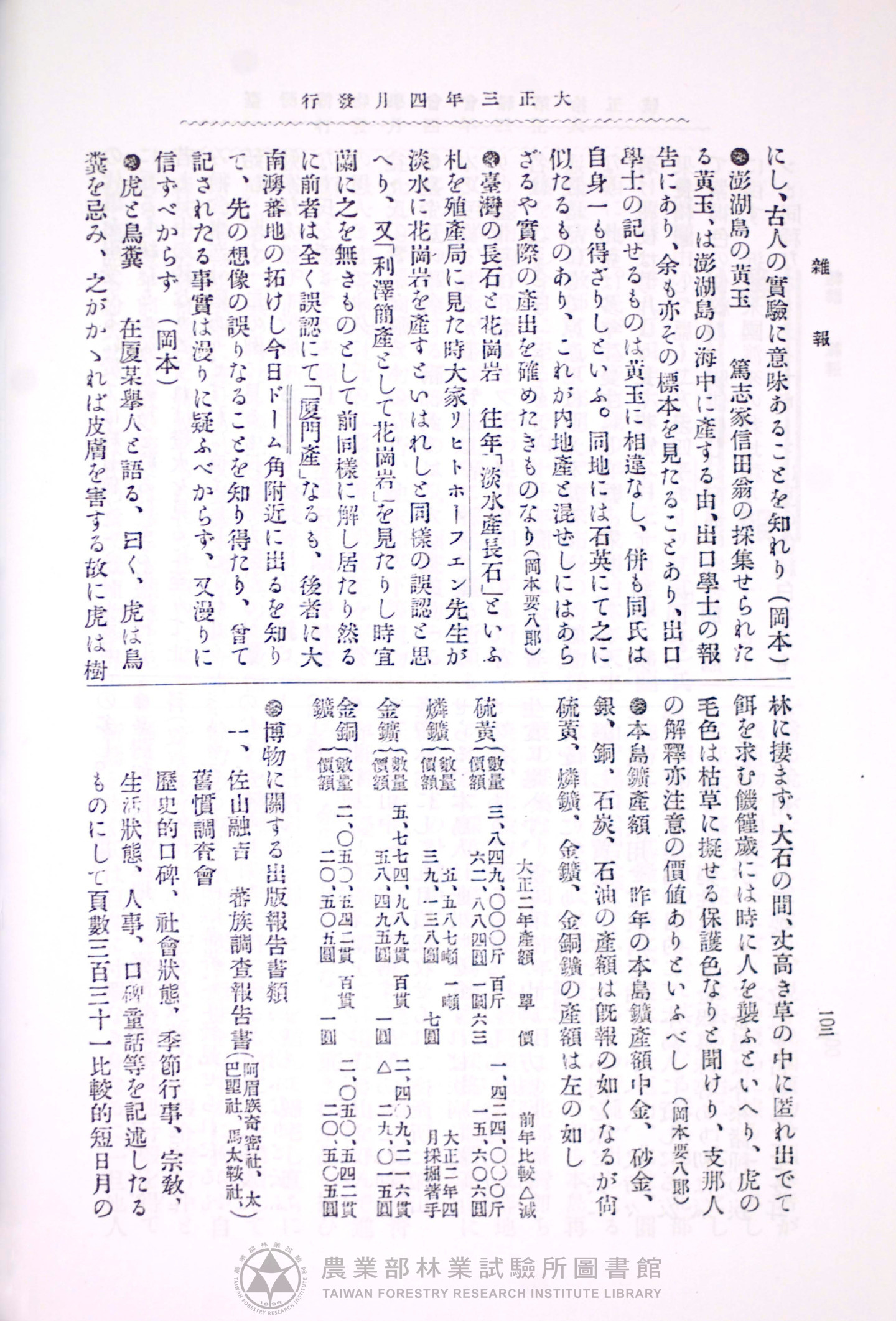 臺灣博物學會會報 第四卷 第十五號