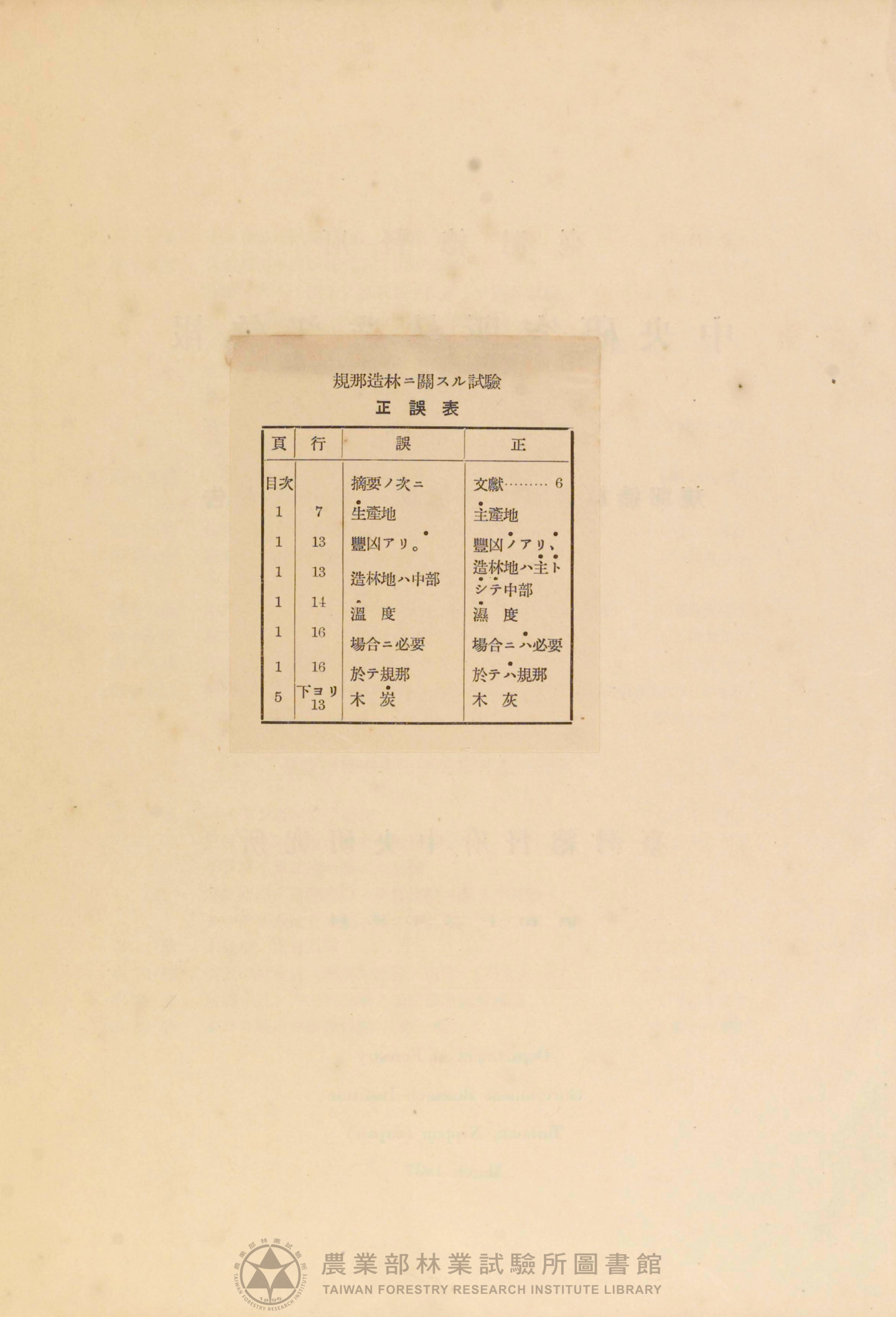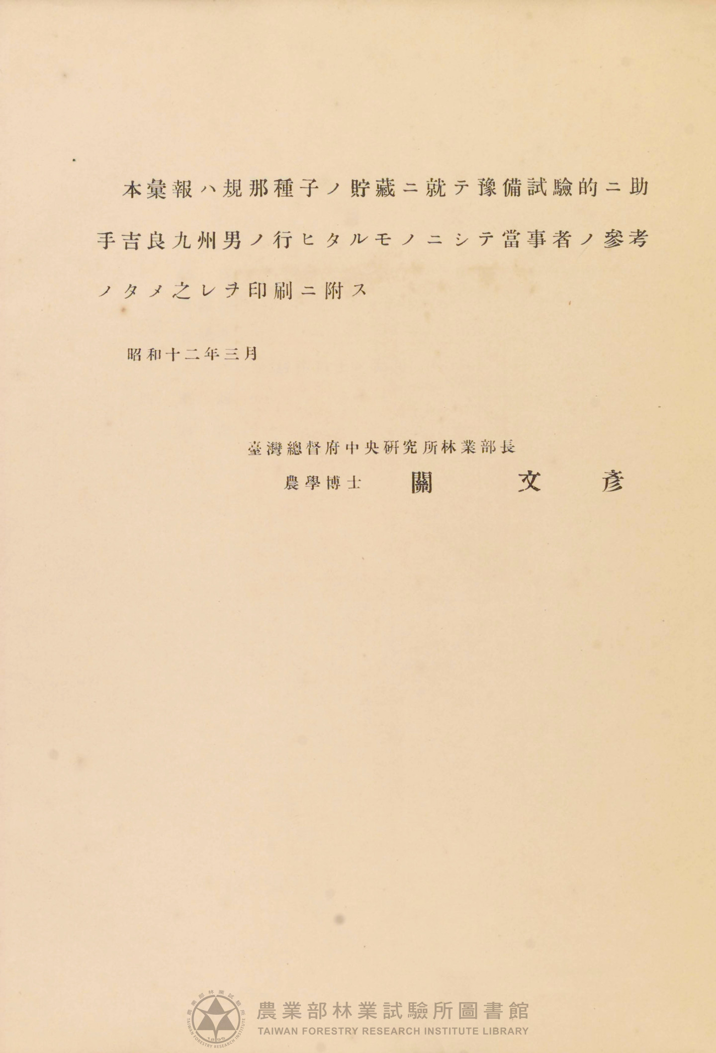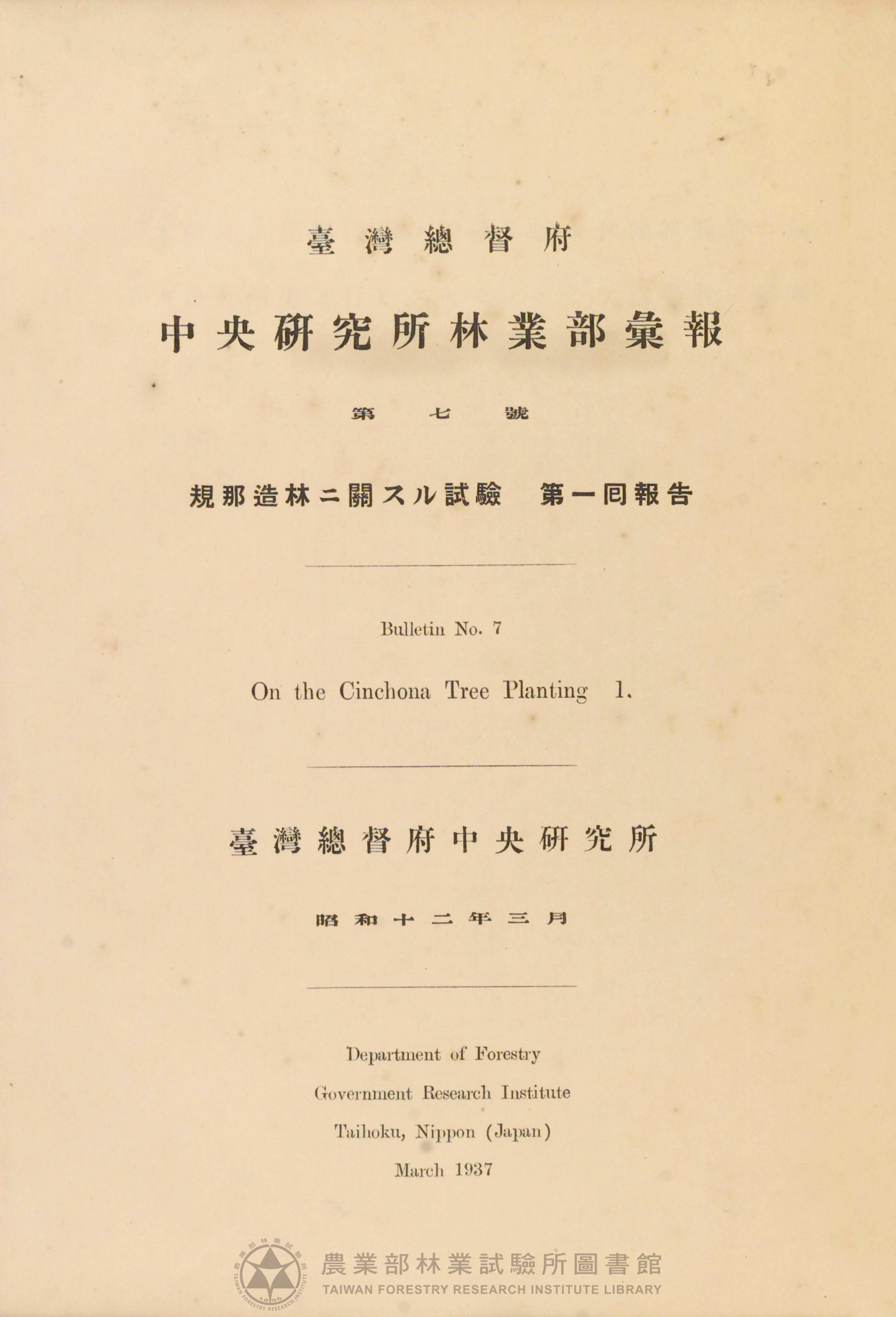 臺灣總督府 中央研究所林業部彙報 第七號