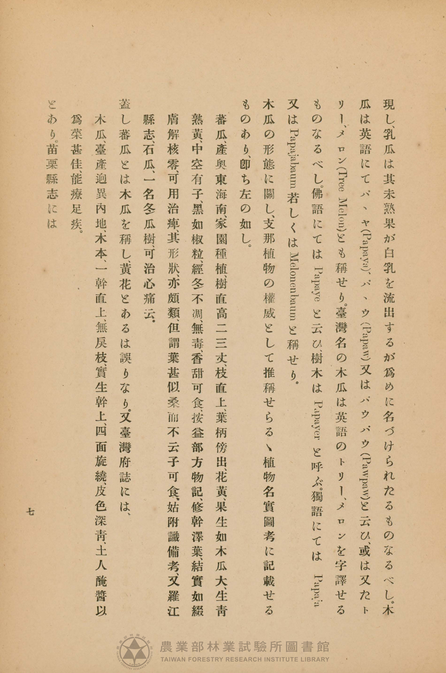 臺灣の熱帶果樹 木瓜( 蕃瓜、萬壽果 ) 第三卷